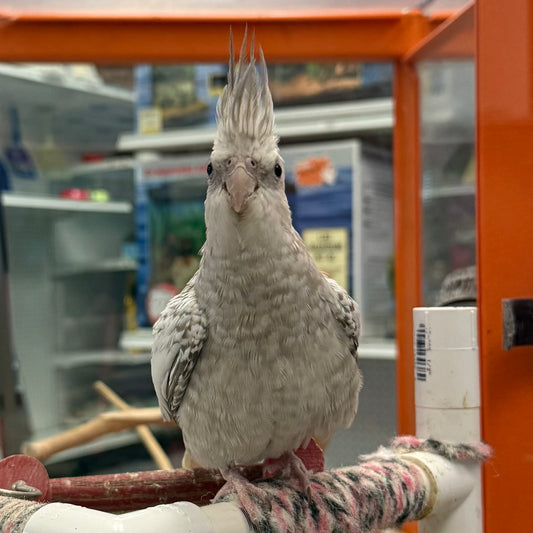 White Face Cinnamon Pearl Cockatiel, Hand-Fed Female
