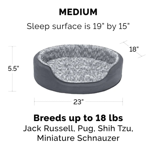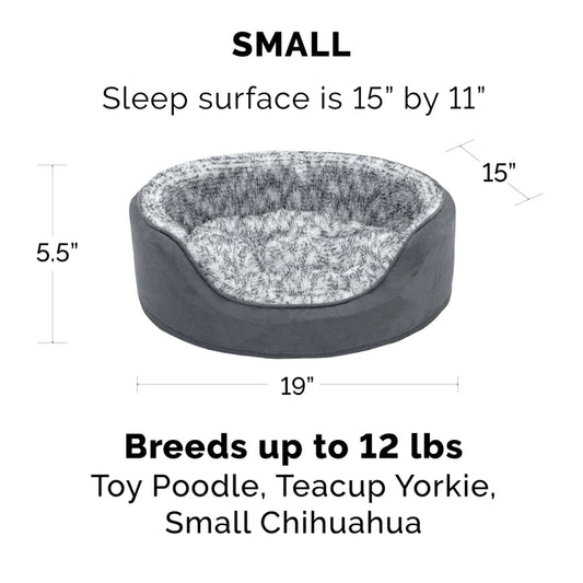 Furhaven Two-Tone Faux Fur & Suede Oval Lounger Dog/Cat Bed, Small
