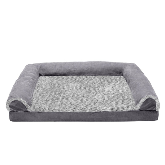 Furhaven Two-Tone & Suede Orthopedic Sofa Dog Beg, Large