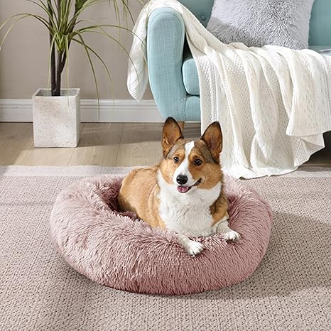 Arlee Shaggy Calming Ortho Donut Bed Taupe, Medium