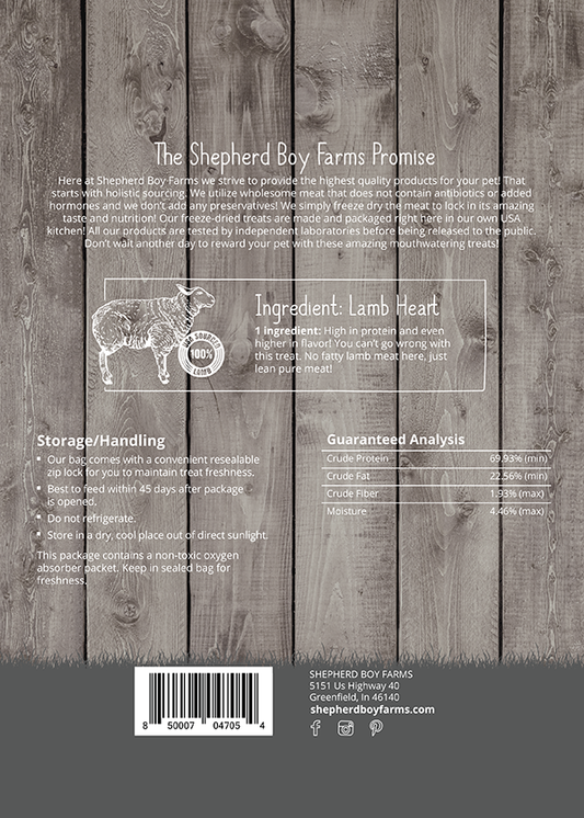 Shepherd Boy Farms Freeze Dried Lamb Hearts 3 oz