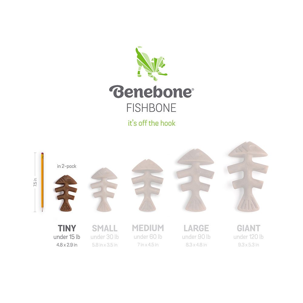 Benebone Puppy 2-Pack Fishbone Tiny. Inspired by the protein of the sea, the Fishbone is flavored with real Jack Salmon, so your dog will go nuts for the smell of it. The nice thing is, you won’t notice.