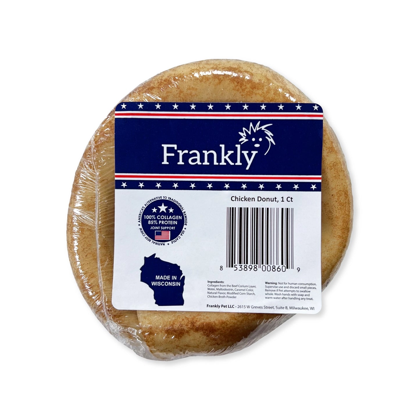 Natural, Chicken and Peanut Butter donut chews are a delicious and healthy treat for any good boy or girl! These chews are a perfect way to keep any dog busy chewing on something healthy all day long.