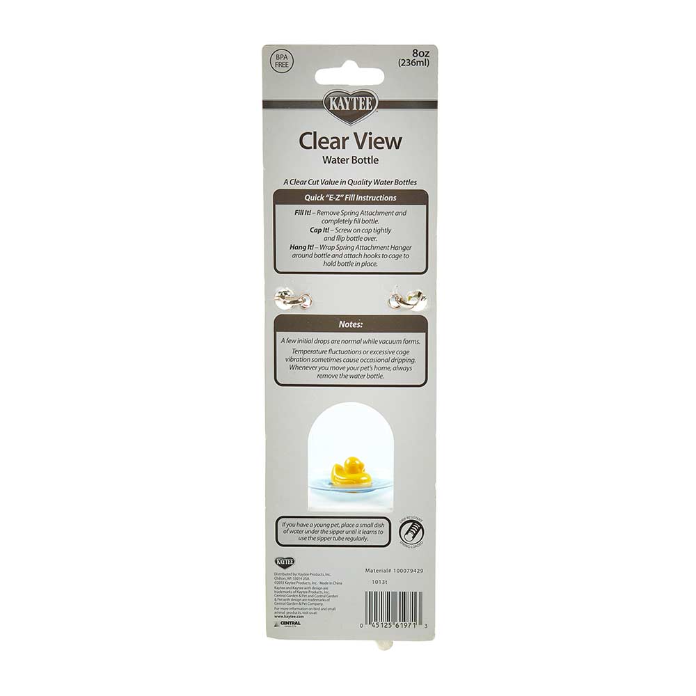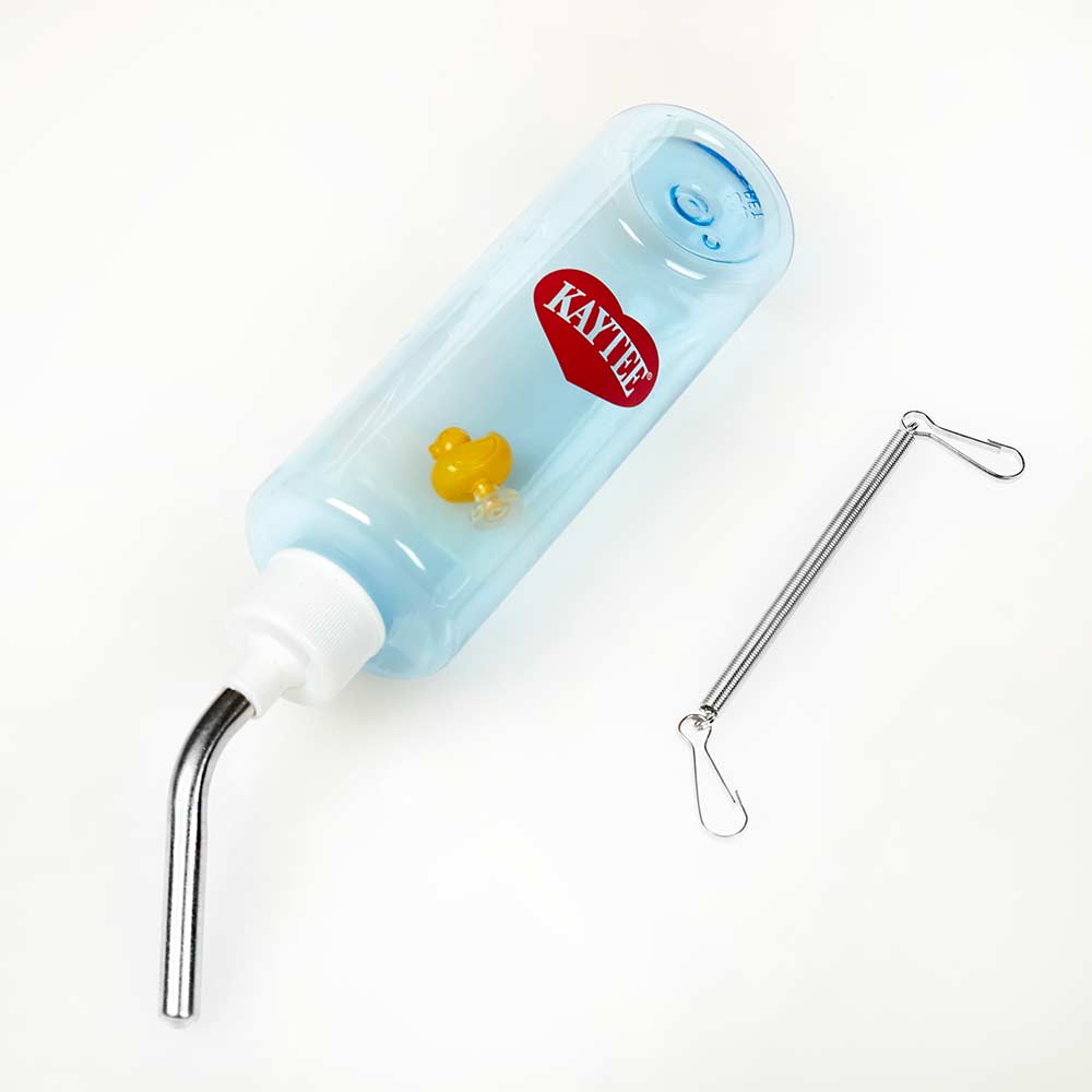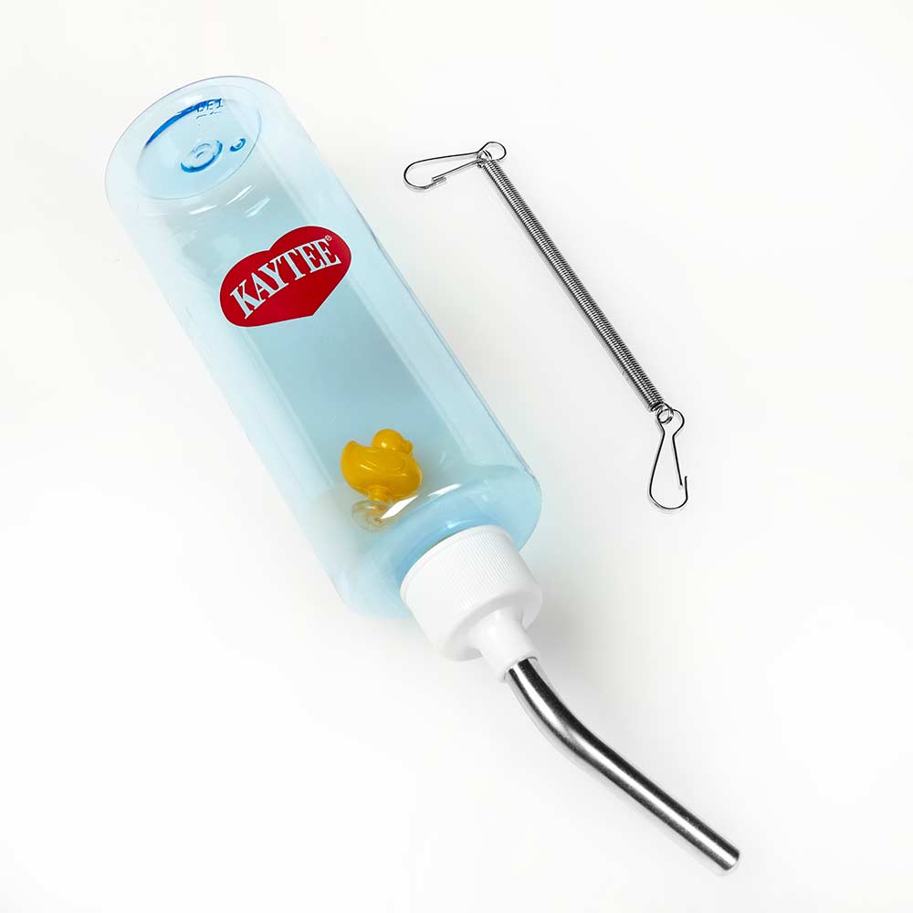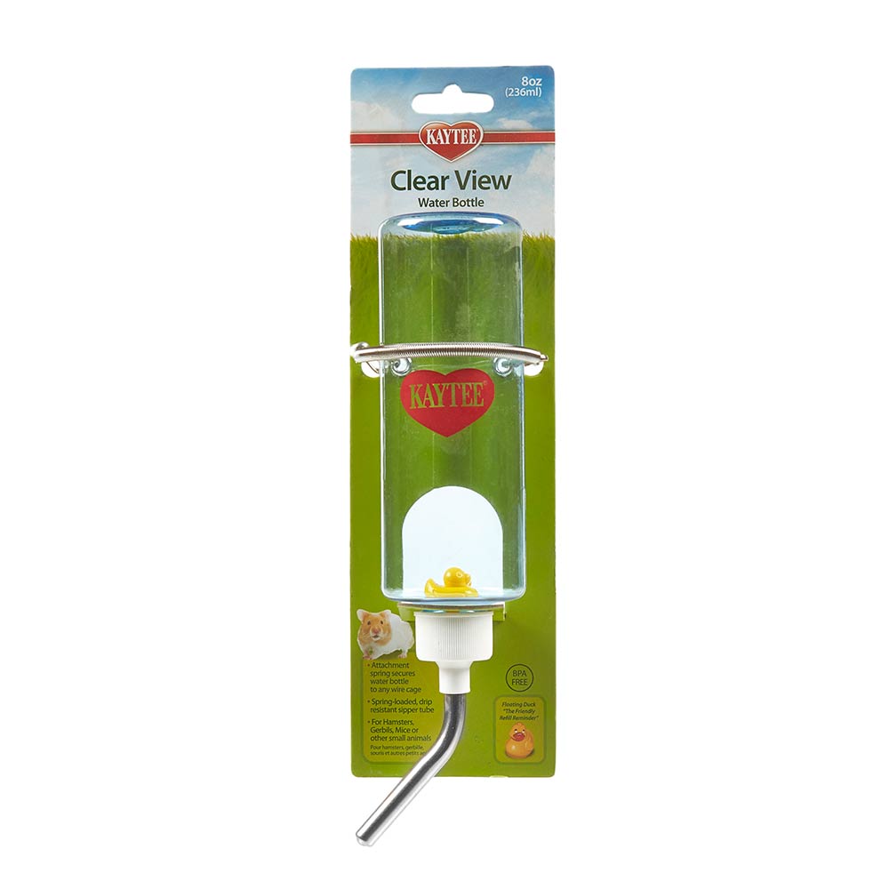 The clear choice water bottle. Heavy duty spring attachment hanger secures bottle to any small animal wire home. Drip resistant sipper tube. Comes with a floating duck to remind owner to refill the bottle.
