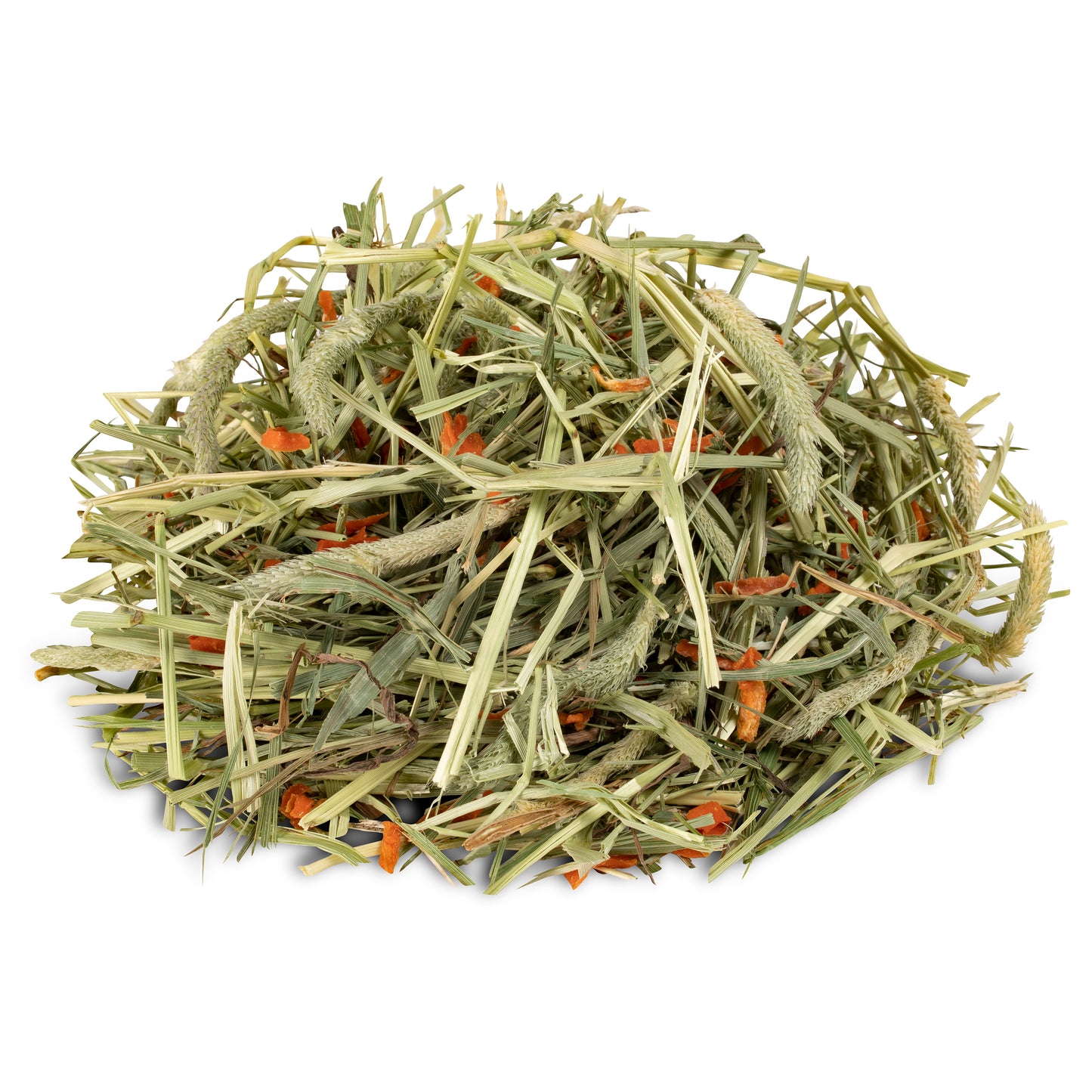 - Natural, long-strand timothy hay plus carrot provides a variety of textures and flavors for added enrichment