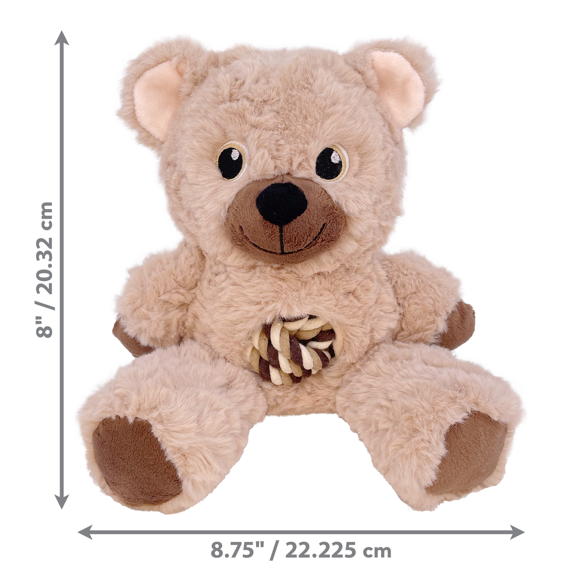 - The durable knotted rope tummy and tail satisfy natural instincts, the squeaker keeps the action going and the deluxe plush and soft body are great for cuddling when it’s time to hibernate.