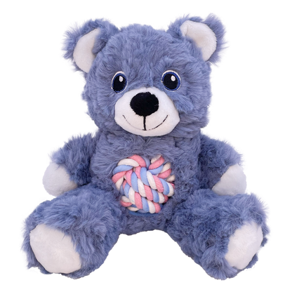 KONG Knots Teddy’s durable knotted rope tummy and tail satisfy natural instincts and make it easy for dogs to pick him up to play for fetching and shaking fun. Squeaker keeps play going. Irresistibly cozy plush and a soft snuggly body invite comforting cuddles when it’s time for a bit of quiet hibernation.