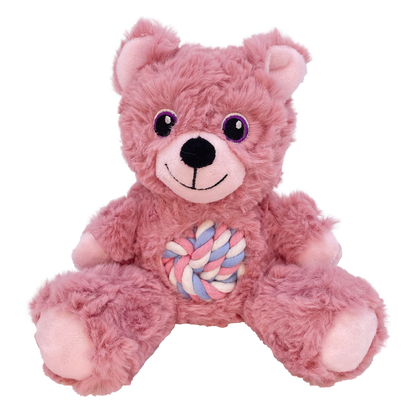 - The durable knotted rope tummy and tail satisfy natural instincts, the squeaker keeps the action going and the deluxe plush and soft body are great for cuddling when it’s time to hibernate.