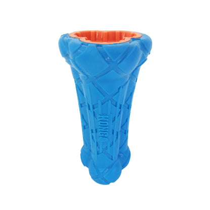 KONG Treatster’s internal fins lock in treats and chews extending chewing fun while rewarding appropriate chewing behavior. The unique, tapered design holds a wide variety of treats, enticing natural foraging instincts. The further a treat is stuffed into the Treatster, the greater the challenge—and reward! This durable treat holder satisfies natural chewing instincts while providing a comfortable way to enjoy snacks.