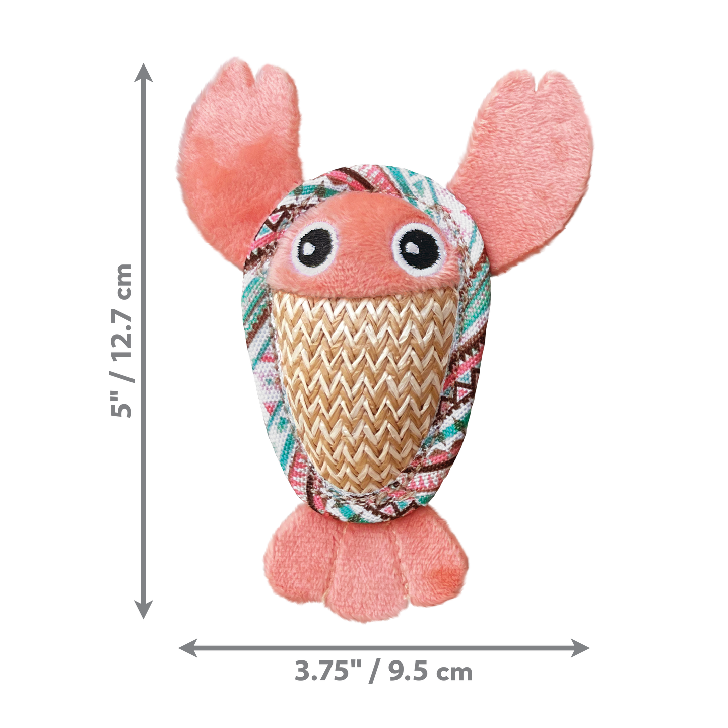 KONG Tropics Pals will swim their way into your cat’s paws and stay to play for a while! Scratchy herringbone shells made with tweed fiber are perfect for kitty claws and biting, while soft-plush material invites cheek nuzzles. Premium North American catnip sprinkles and crackly inner material inside these saltwater creatures stimulates the senses and invites pouncing & batting. This multi-sensory toy will keep your cat’s attention with its various fun features.