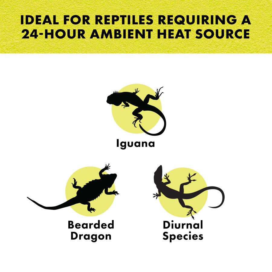 - NIGHT BLACK IS PERFECT for reptiles requiring night heat with very little visible light, such as bearded dragons, iguanas and other diurnal species.