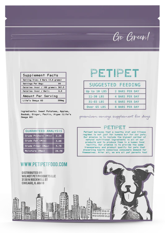 PETIPET Omega DHA Bars Dog Treats 60 ct