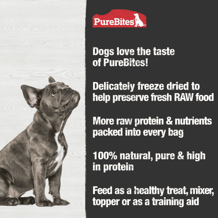 - Dogs love the taste of PureBites! 100% natural, high in protein, low in calories (only 3 calories per average treat) and nothing added like colors, fillers, or sweeteners