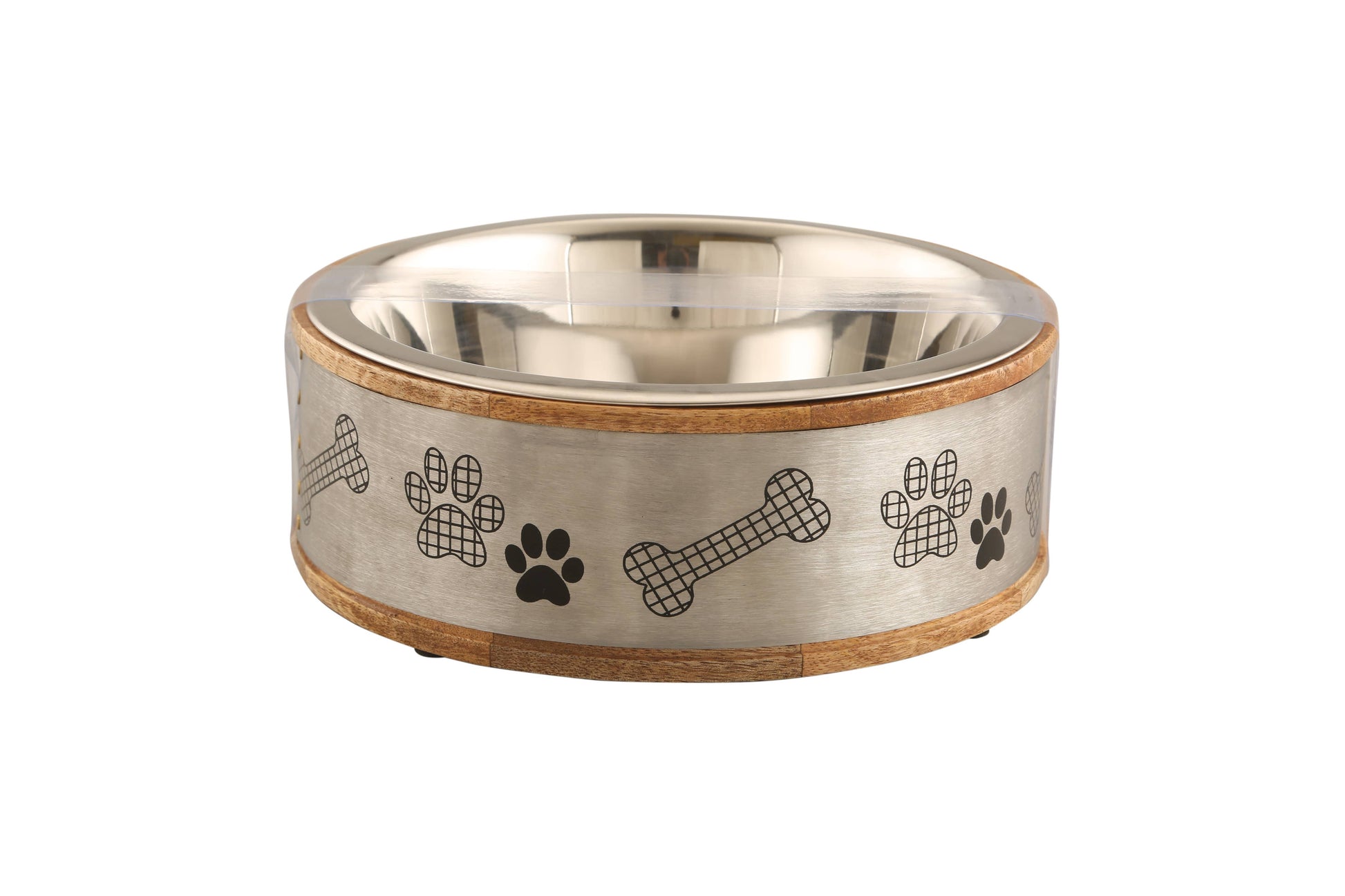 Advance Pet Products Wood and Metal Sleeve Bowl with Paw Print- Silver: 2 Qt 8.5"x 8.5"x 3"