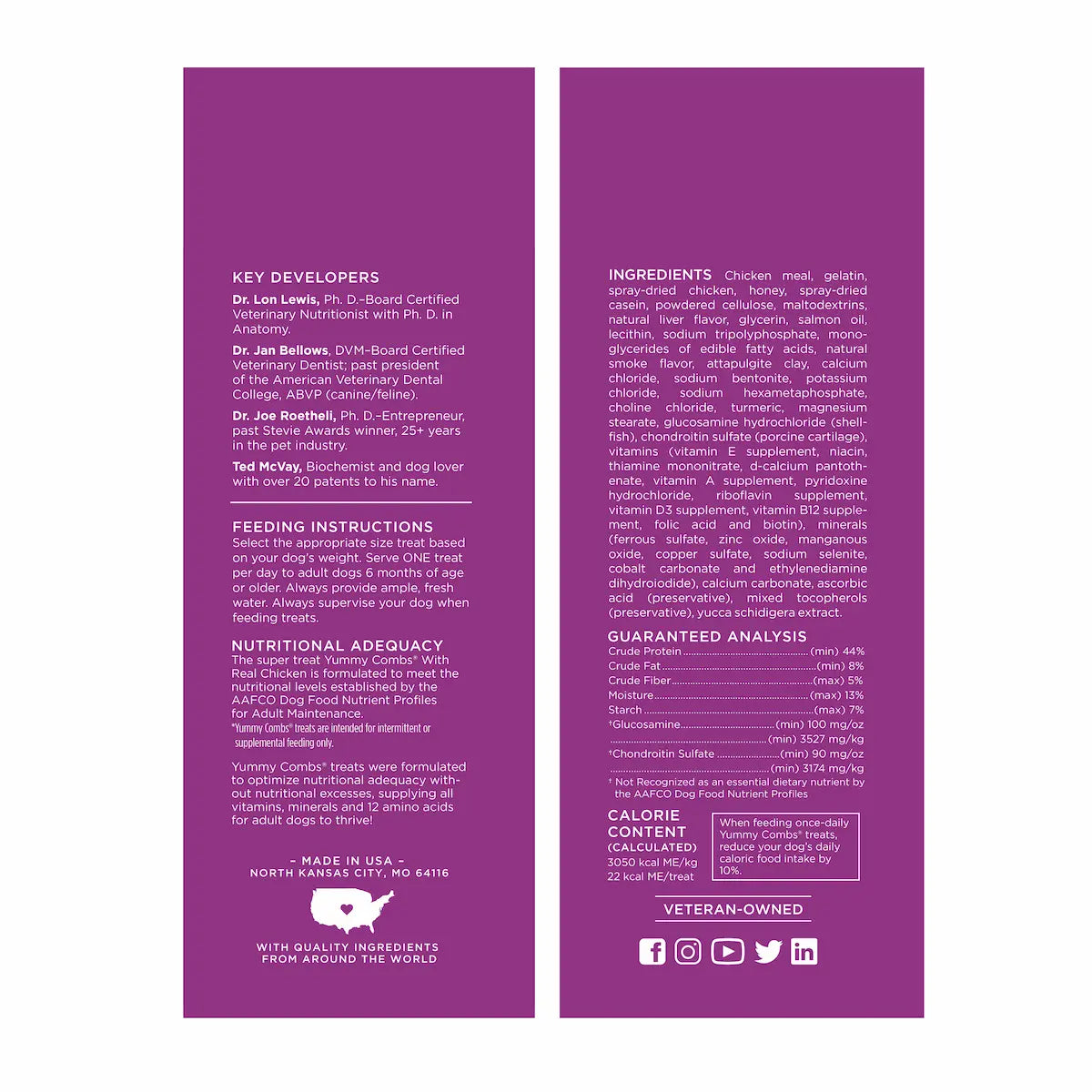 The super treat Yummy Combs® with Real Chicken is formulated to meet the nutritional levels established by the AAFCO Dog Food Nutrient Profiles for Adult Maintenance.